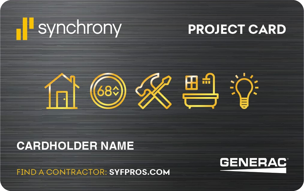 The Synchrony Project Card offers a variety of financing options for your home generator system purchase. Click below to apply now or see if you prequalify!
